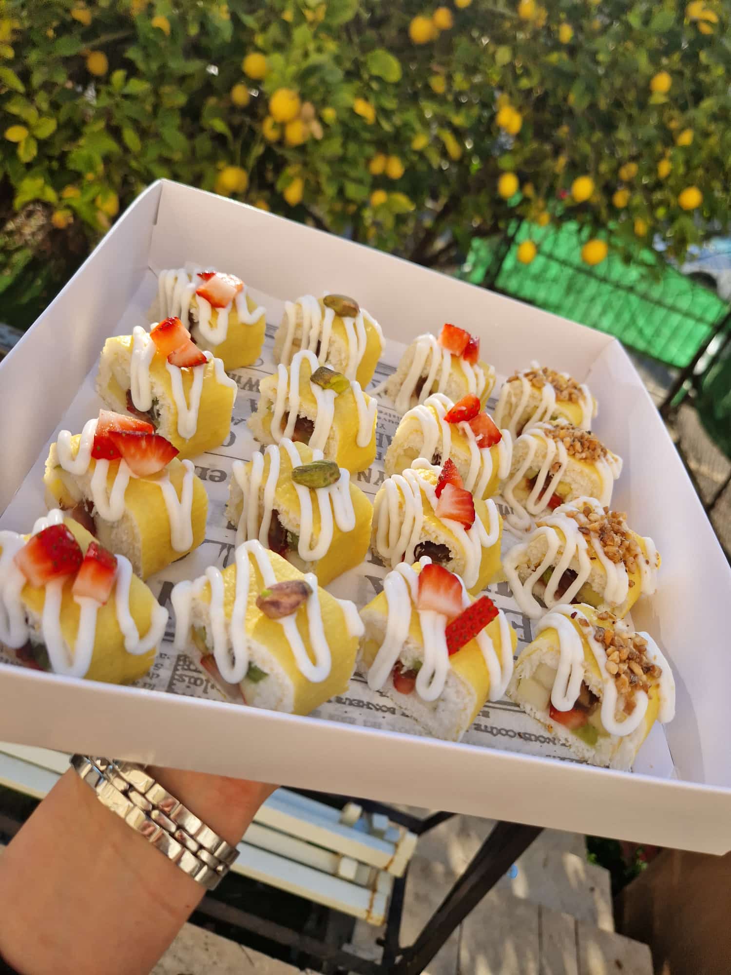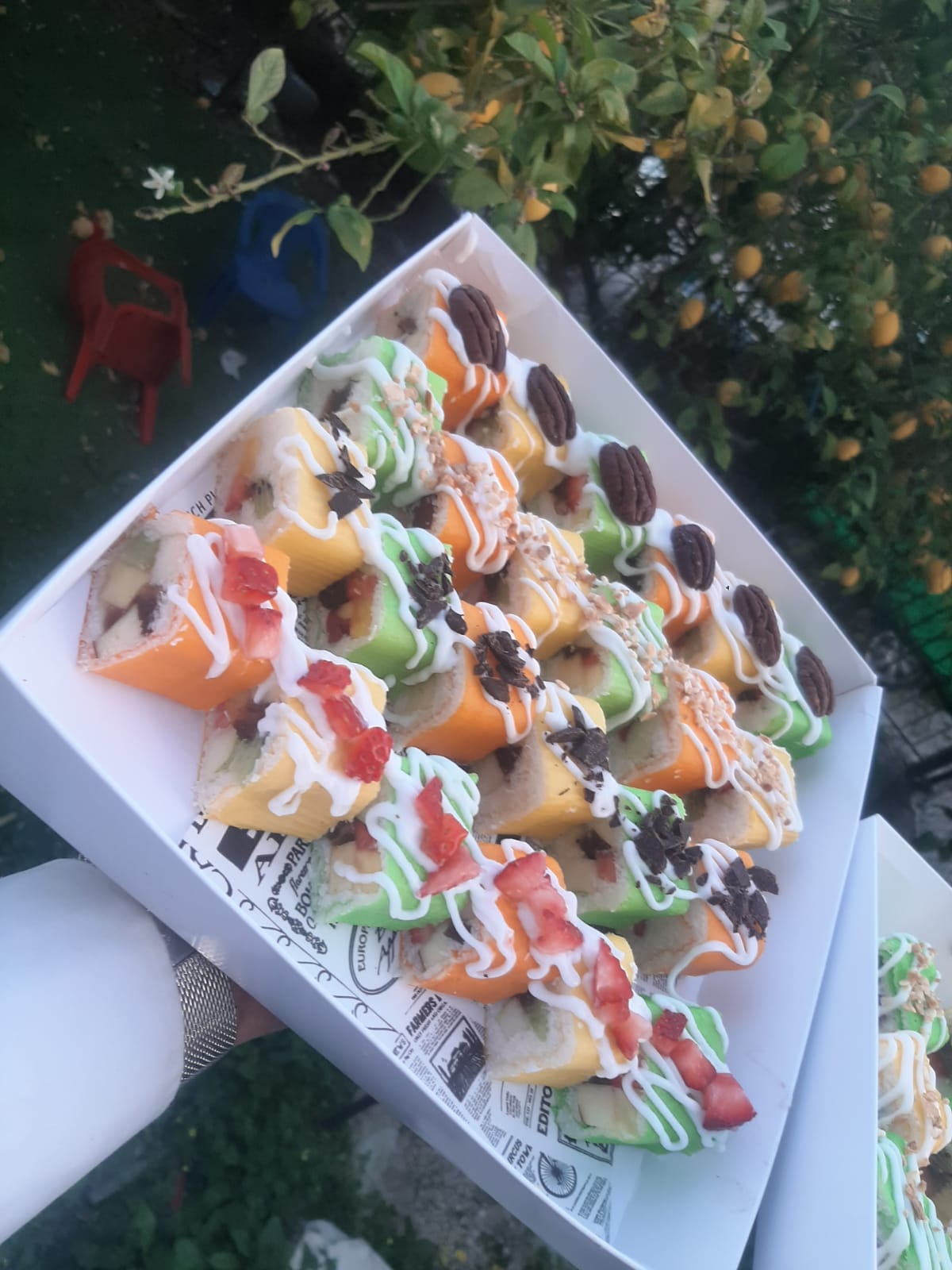 חוויה ייחודית שמפתיעה כל פעם מחדש – סושי פירות מושקע, צבעוני וטעים במיוחד, עשוי מפירות העונה בשילוב מרקמים ומילויים מפנקים. אידיאלי כקינוח קליל או כתוספת למגש פירות.