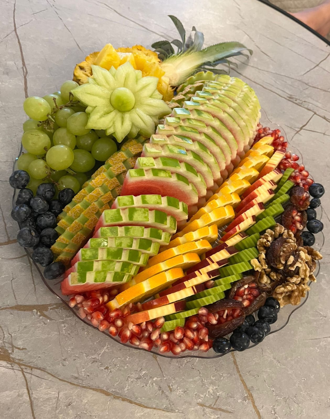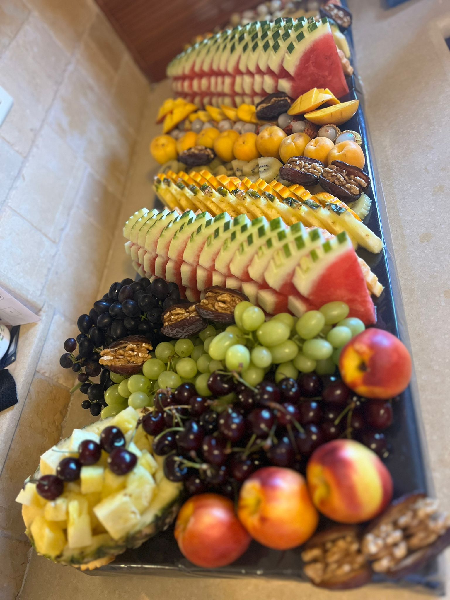 מגשי פירות מרהיבים במגוון גדלים וסגנונות – עגולים, מרובעים או בהתאמה אישית. כל מגש מורכב מפירות העונה הטריים ביותר, חתוכים ומסודרים בהרמוניה מושלמת למראה יוקרתי ומגרה. מתאים לאירועים, מתנות או סתם כשבא לפנק.
